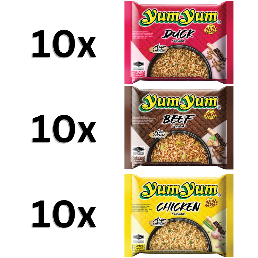 Yum Yum Instand Nudeln Set - 10xEnte, 10xRind, 10xHuhn